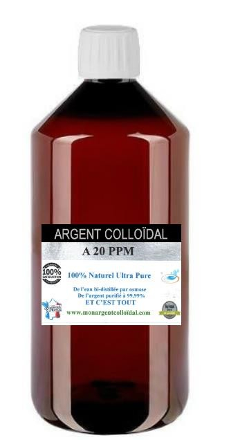 Argent-colloïdal A 20 PPM 1 Litre * En bas de cette page le point sur la réglementation Obtenu par dilution de notre concentré de base à 2000PPM L'Argent-colloïdal A 20 PPM (PPM = partie par million) Le procédé 100% naturel est assez simple, de l'eau ultra pure bidistillée par osmose (zéro PPM avant l'électrolyse) provenant d'un laboratoire Français conformément à la législation Européenne, des électrodes d'Argent purifié à 99,99%, rien d'autre mais avec l'énorme avantage de rentrer dans le monde de l'infiniment petit. Ces particules proviennent d'un générateur ultra puissant et d'une technologie de pointe qui nous permet d'obtenir une concentration de particules sous forme de "nuage" ces particules bien plus fines sont impossibles à obtenir avec des "jouets", les colloïdes sont concentrées en plus grand nombre dans un même volume d'eau (ces nano, on doit même dire "ces pico particules" invisibles à l’œil nu) sont totalement incolore, naturelles et 100% assimilable, elles ont un pouvoir purifiant pour de meilleurs résultats. Nous adaptons cette même méthode pour la production de l'Or, l'Argent, le Cuivre et le Zinc. Antibiotique 100% naturel Capable de luter contre plus de 650 espèces de microbes, virus, bactéries, parasites, moisissures et champignons, dont certains en moins de 10 minutes ! Germicide et bactéricide "reconnu miraculeux", l’argent colloïdal est un remède 100% naturel un Monsieur Muscle capable d'affronter plusieurs pathologies et qui a prouvé son efficacité au fil du temps.