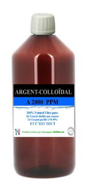 Concentré à 2000 PPM donc plus efficace que le 1000 PPM…. * Pour cette quantité de 1 litre merci de nous consulter pour connaitre l'état du stock * Disponible de suite ou mis en production à la commande généralement expédié sous 8 à 10 jours. A utiliser tel que, vous pouvez aussi le diluer dans de l’eau bi-distillée uniquement. Avec 1 litre à 2000 ppm dilué dans 10 litres d'eau bi-distillée vous obtenez 10 litres à 200 PPm, dilué dans 100 litres d'eau bi-distillée vous obtenez 100 litres à 20PPM. * Ne Jamais utiliser d'ustensiles en métal * En bas de cette page le point sur la réglementation Obtenu par dilution de notre concentré de base à 2000PPM L'Argent-colloïdal A 2000 PPM (PPM = partie par million) Le procédé 100% naturel est assez simple, de l'eau ultra pure bi-distillée par osmose (zéro PPM avant l'électrolyse) provenant d'un laboratoire Français conformément à la législation Européenne, des électrodes d'Argent purifié à 99,99%, rien d'autre mais avec l'énorme avantage de rentrer dans le monde de l'infiniment petit. Ces particules proviennent d'un générateur ultra puissant et d'une technologie de pointe qui nous permet d'obtenir une concentration de particules sous forme de "nuage" ces particules bien plus fines sont impossibles à obtenir avec des "jouets", les colloïdes sont concentrées en plus grand nombre dans un même volume d'eau (ces nano, on doit même dire "ces pico particules" invisibles à l’œil nu) sont totalement incolore, naturelles et 100% assimilable, elles ont un pouvoir purifiant pour de meilleurs résultats. Nous adaptons cette même méthode pour la production de l'Or, l'Argent, le Cuivre et le Zinc.