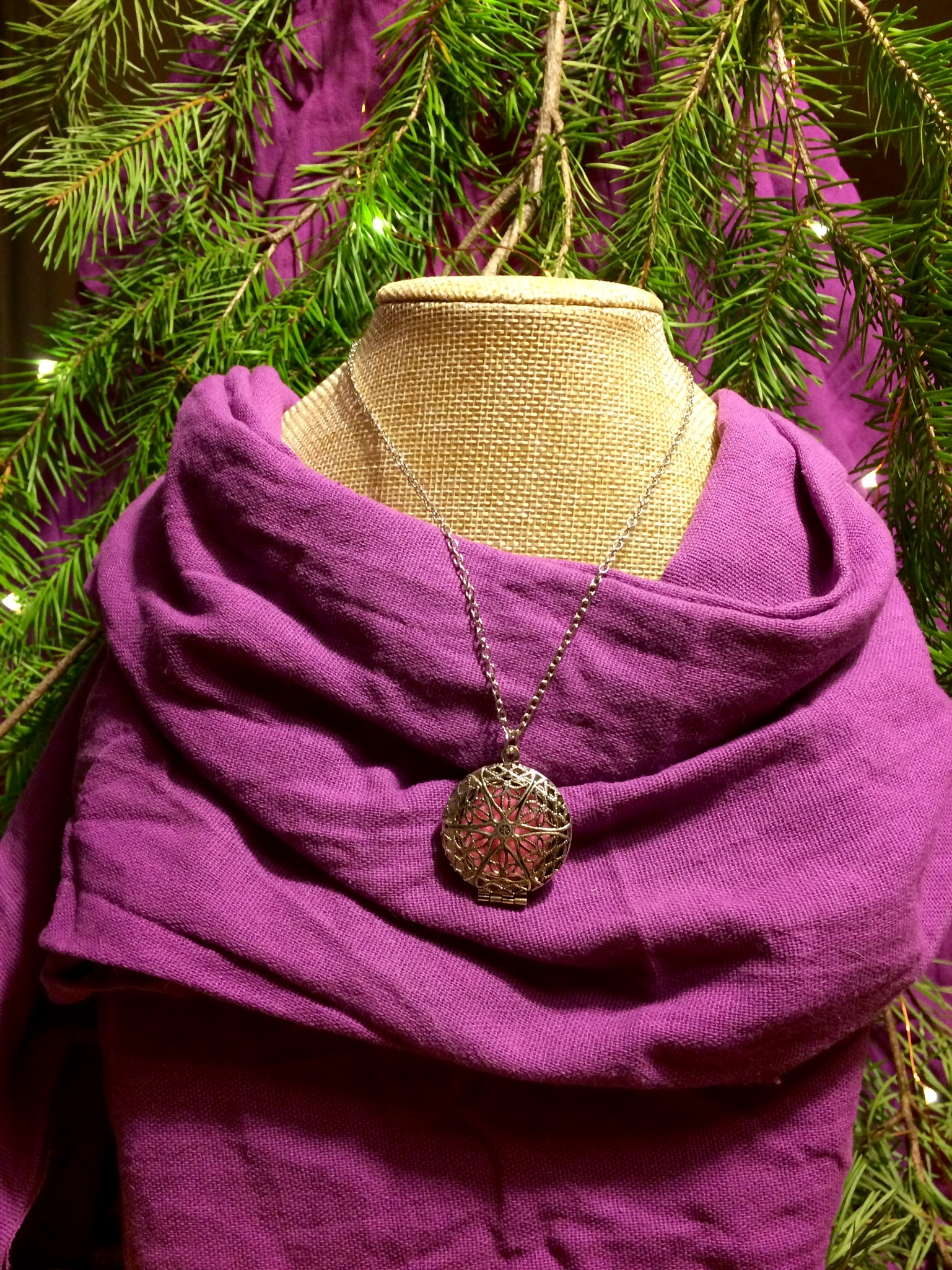 Ce bijou diffuseur de 2,5 cm de diamètre reprend dans ses formes les contours d'une étoile dans du métal vieilli, faisant référence à la poussière d'étoile. Accompagné d'une chaine en acier inoxydable et de 5 petits pads de couleurs différentes, ce bijou en alliage de cuivre vous accompagne partout et permet une diffusion douce et continue de la synergie que vous choisissez de porter !