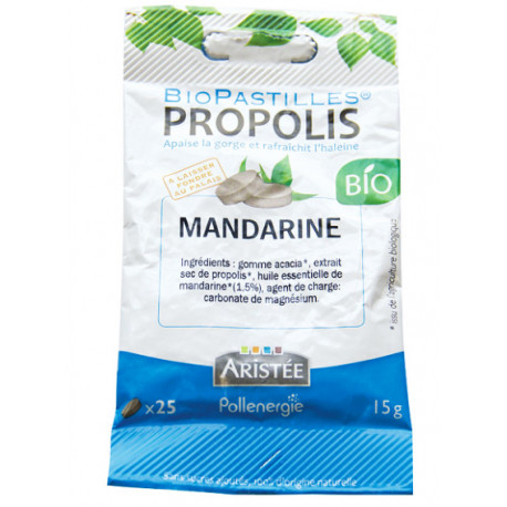 Pollenergie vous propose ces Biopastilles à la Propolis et à la mandarine Bio.