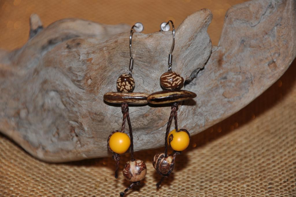 Boucles d'oreilles en inox avec des graines - Açaï jaune - "Flamb"