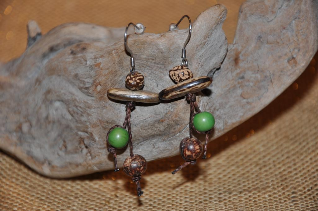Boucles d'oreilles en inox avec des graines - Açaï vert - "Flamb"
