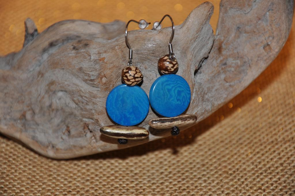 Boucles d'oreilles en inox avec des graines - Tagua bleu - "Moy"