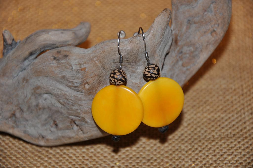 Boucles d'oreilles inox & graines - Tagua jaune - "Maxi"