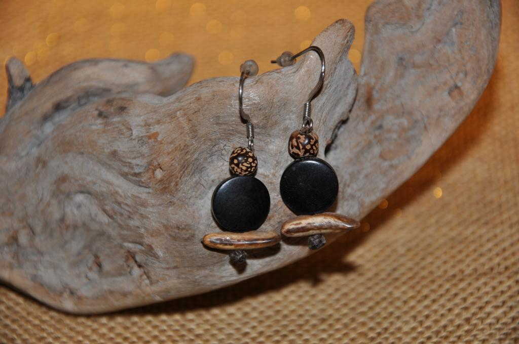 Boucles d'oreilles inox & graines - Tagua noir - "Petit"