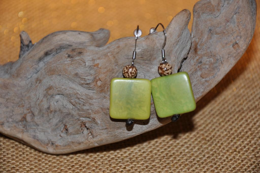 Boucles d'oreilles en inox avec des graines - Tagua vert - "Carré"