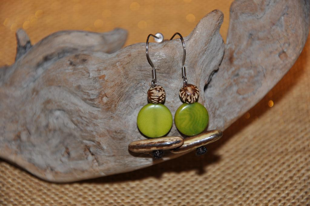 Boucles d'oreilles en inox avec des graines - Tagua vert - "Petit"