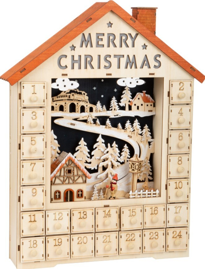 Ce calendrier de l'Avent aux finitions détaillées possède un ravissant décor :