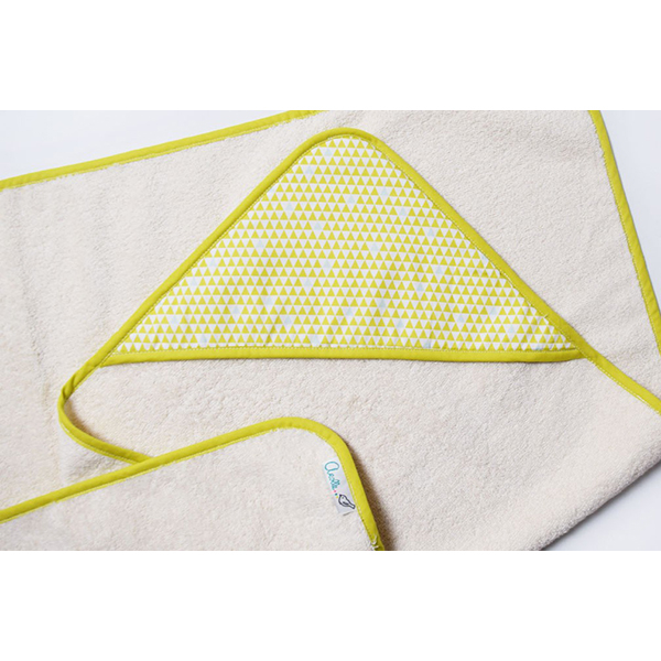 Confectionnées dans un linge éponge en coton 100% BIO certifié, absorbant, anallergique et très doux au toucher. La capuche aux motifs graphiques est entièrement doublée de linge éponge, et l'ensemble est bordé par un biais coloré.