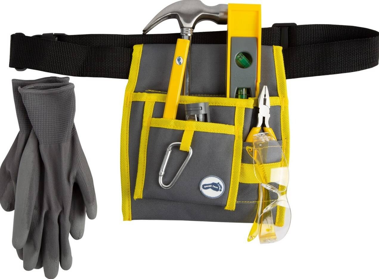 Ceinture porte-outils avec de véritables outils adaptés aux mains d'enfants.