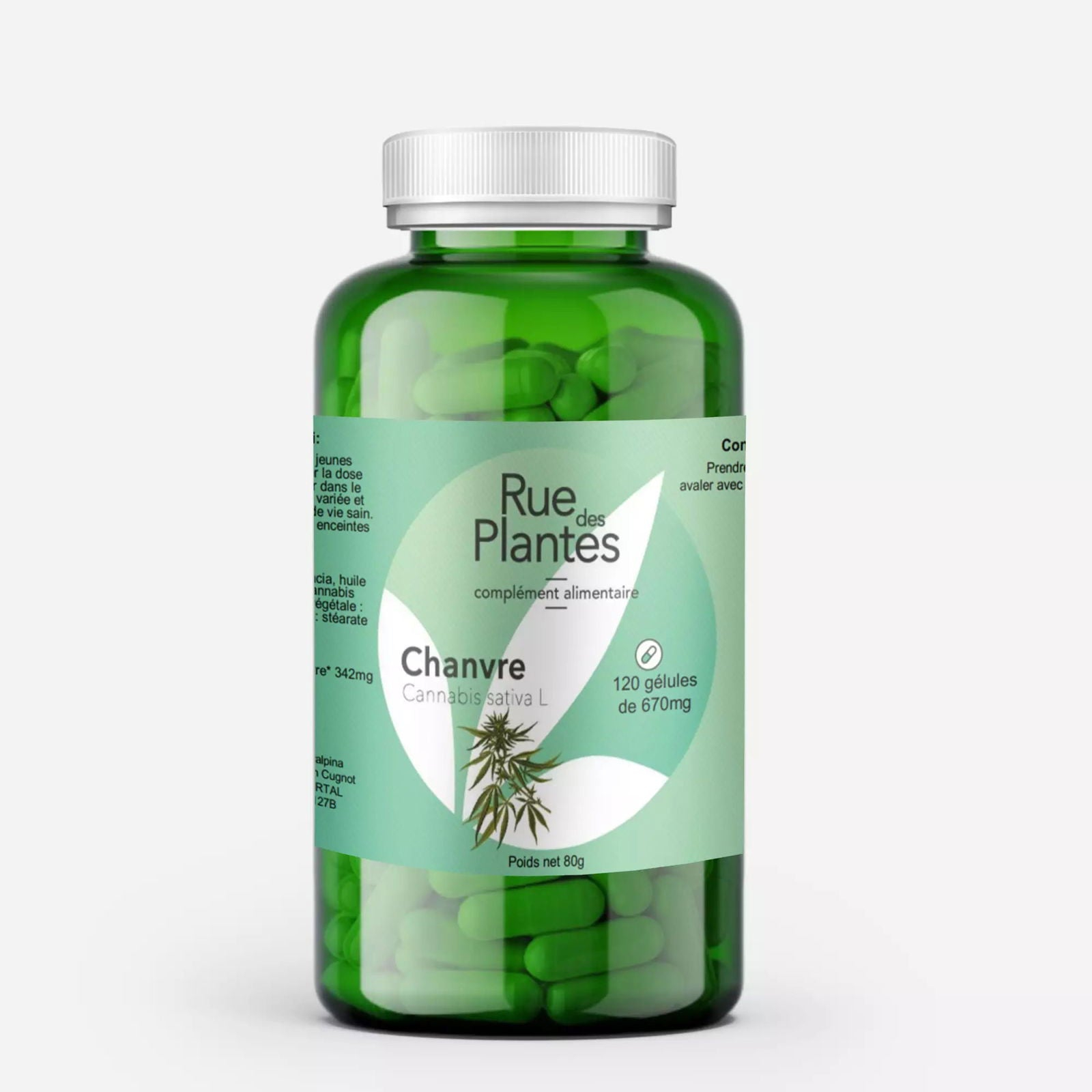 Ingrédients pour 3 gélules Ingrédients (parties utilisées) Composition Chanvre (dont maltodextrine et silice) 1.14 g Enveloppe végétale: HPMC 285 mg