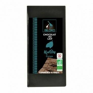 Tablette de chocolat au lait Bio à base de cacao bio du Congo.