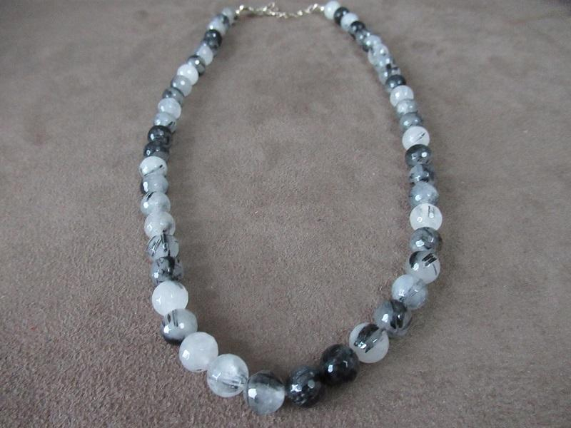 Collier en quartz à tourmaline de 8mm (pierres facetées)