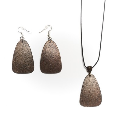 Collier pendentif en coquille d'œuf d'autruche peinte à l'éponge en taupe doré accompagné d'une pièce en métal couleur bronze