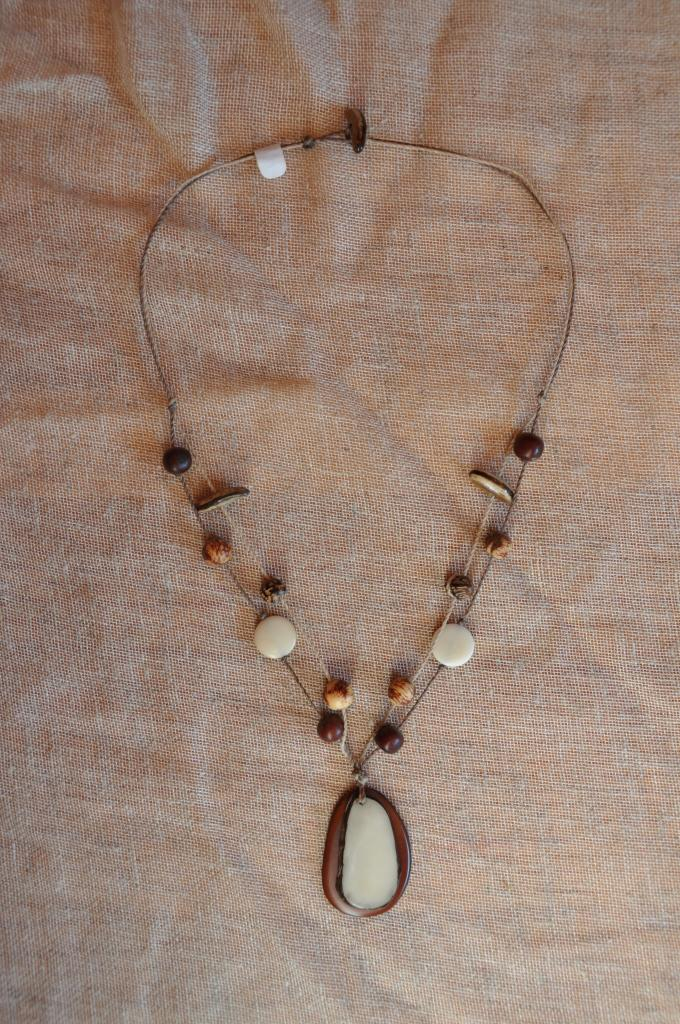 Collier pendentif avec des graines - Tagua blanc - Chips double
