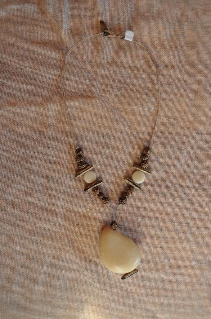 Collier pendentif avec des graines - Tagua blanc - Noix