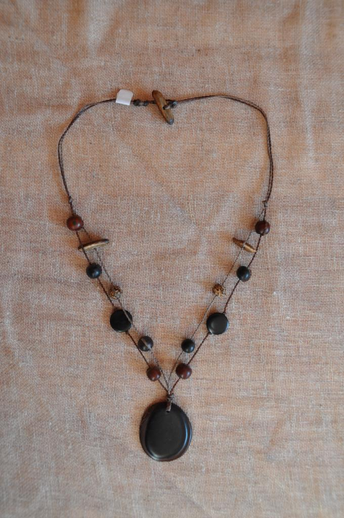 Collier pendentif avec des graines - Tagua noir - Chips double