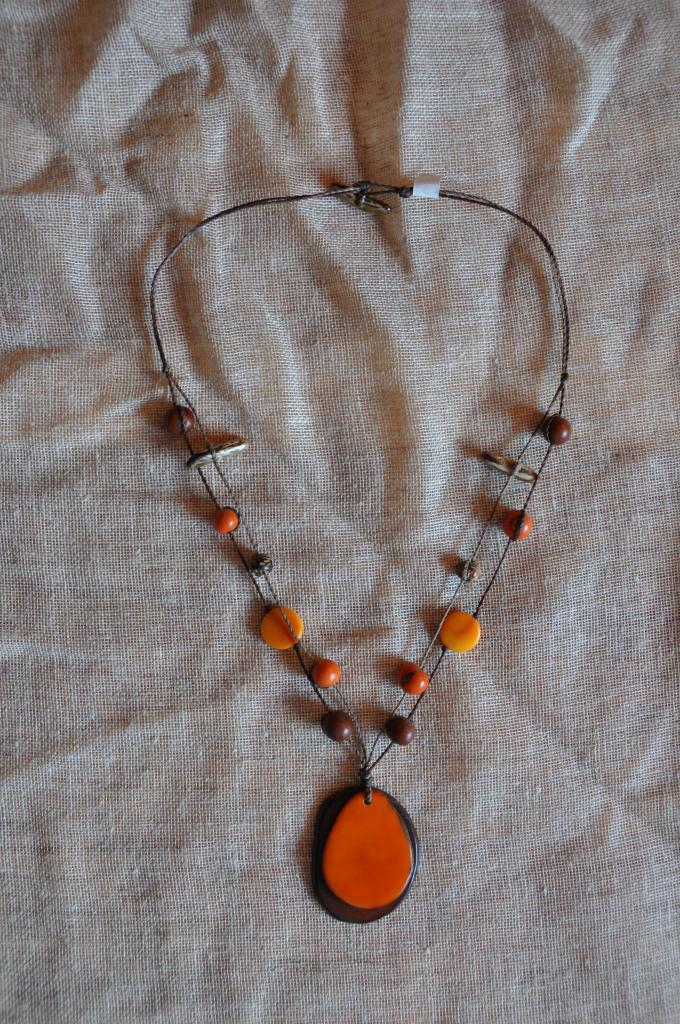 Collier pendentif avec des graines - Tagua orange - Chips double