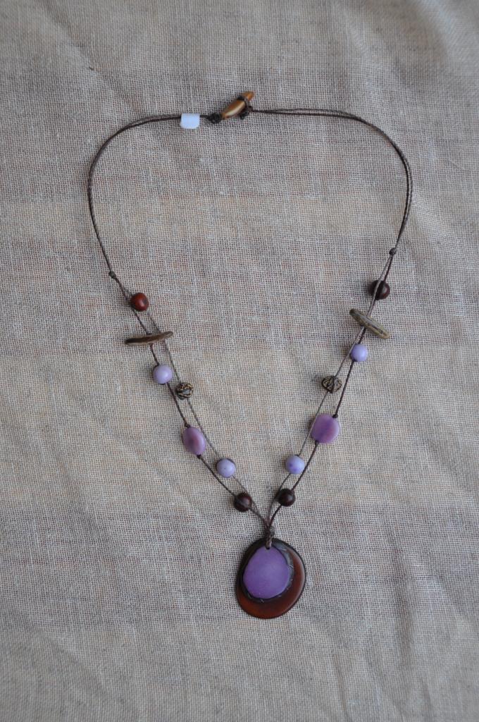 Collier pendentif avec des graines - Tagua violet - Chips double