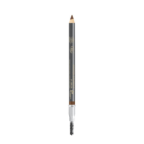 Conseils d'utilisation : Brosser les sourcils à l’aide de l’embout brosse de la base jusqu’à la pointe. Appliquer le crayon par petites touches vers le haut en suivant à la ligne des sourcils et en comblant les zones moins denses. Brosser de nouveau pour fondre et estomper l’ensemble.