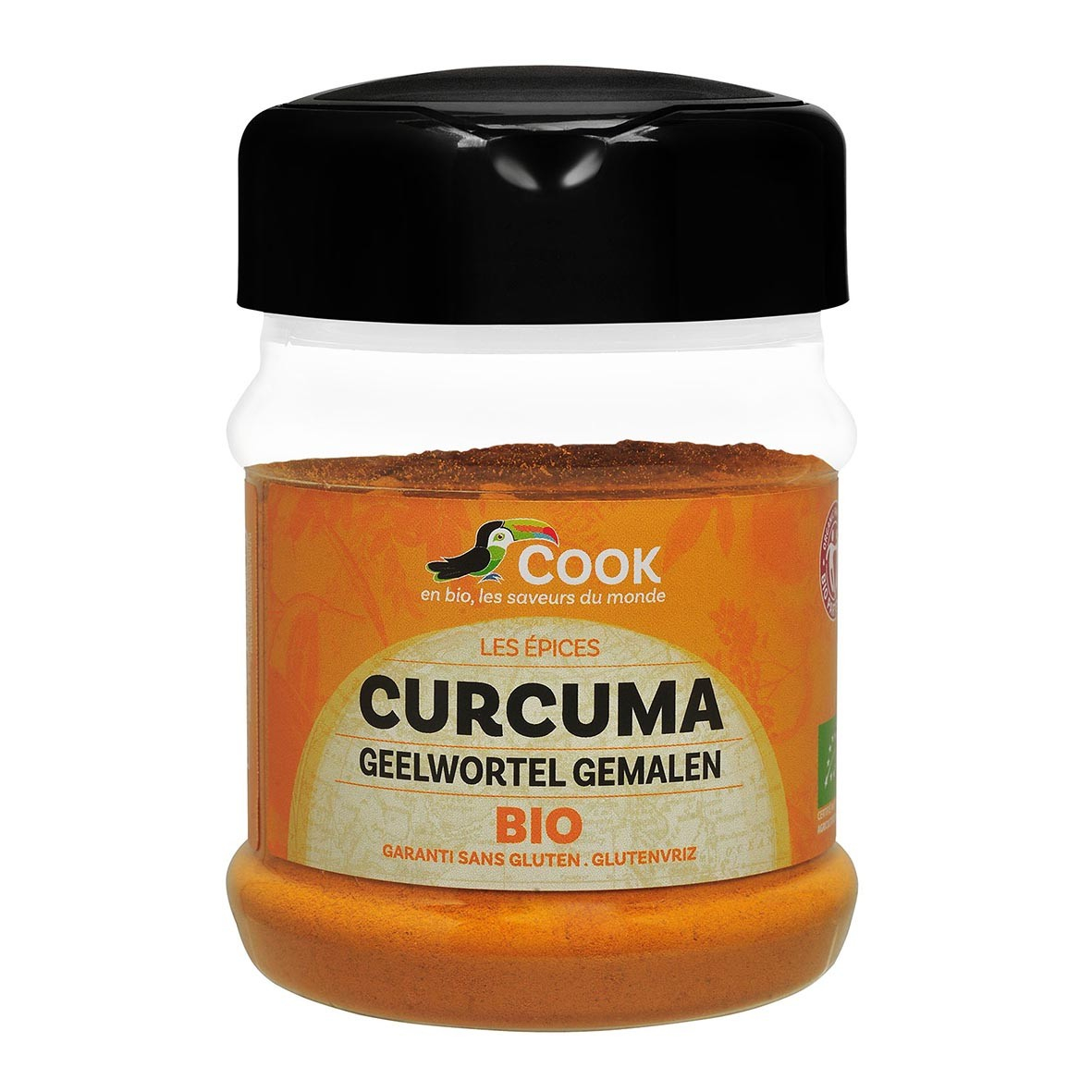 Le curcuma moulu bio de la marque Cook ajoute saveur et une magnifique couleur jaune aux préparations en plus de ses vertus pour la santé.