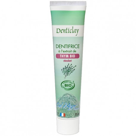 Ce Dentifrice contient de l'argile blanche, un extrait de thym bio et du sel marin non raffiné.