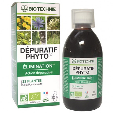 Biotechnie propose le Dépuratif Phyto 32, une combinaison de plantes qui soutient l'élimination et aide à purifier l'organisme.