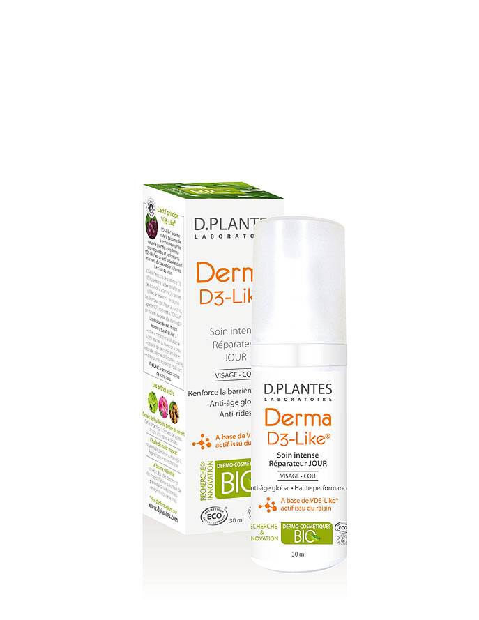 VD3-Like® est issu du raisin. VD3-Like® n’est pas de la vitamine D3. VD3-Like® mime l’action de la forme bio-active de la vitamine D3 dans les cellules de l’épiderme : le calcitriol. Il présente des résultats étonnants sur la stimulation des sirtuines, enzymes de jeunesse liées à notre ADN et sur le bon maintien de la peau. La ligne de soins VD3-Like® associe des formules sensorielles de haute technologie avec des actifs naturels très performants.