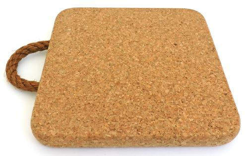 Un dessous de plat chaud avec poignée en corde, fait en matière naturelle de liège. Il est léger, antidérapant et résistant à la chaleur jusqu'à 130°. C’est un produit à forte longévité, car le liège est extrêmement résistant à l'abrasion et a un coefficient de frottement élevé. Grâce à sa structure en nid d'abeille, sa résistance aux chocs ou au frottement est supérieure à d'autres surfaces dures.