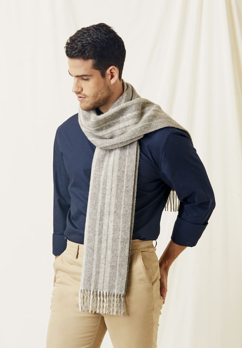 Echarpe classique en baby alpaga, en couleur naturelle à rayures
