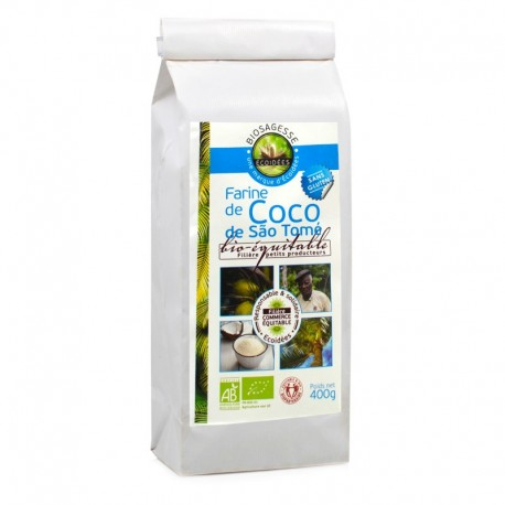 La Farine de Noix de Coco Bio-équitable de Sao Tomé est produite à partir de chair de noix de coco dégraissée (après en avoir extrait naturellement l'huile) puis broyée finement. Il est prouvé que la farine de coco permet de faire baisser significativement l'index glycémique des ingrédients avec lesquels elle est mélangée.