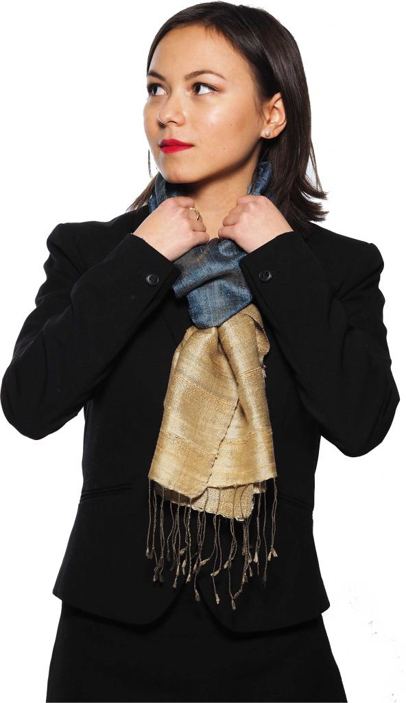 Foulard en soie tissé main Tsinshara. Agrémenté de subtils reflets, le foulard en soie Tsinshara offrira une clarté et une note lumineuse à votre journée.