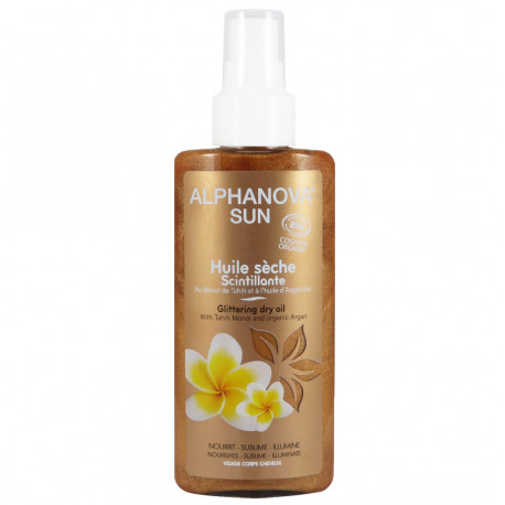 Alphanova vous propose cette Huile Sèche Scintillante bio pour le visage, le corps et les cheveux.