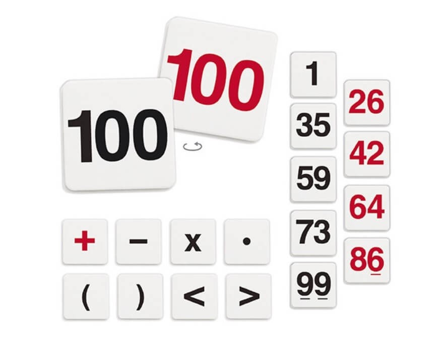 180 fiches avec des nombres, rouge sur le recto , noir sur le verso 36 fiches avec des signes mathématiques, rouge sur le recto, noir sur le verso.