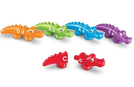 L'enfant doit assembler ces alligators colorés en associant les lettres majuscules et minuscules, ainsi que les couleurs.