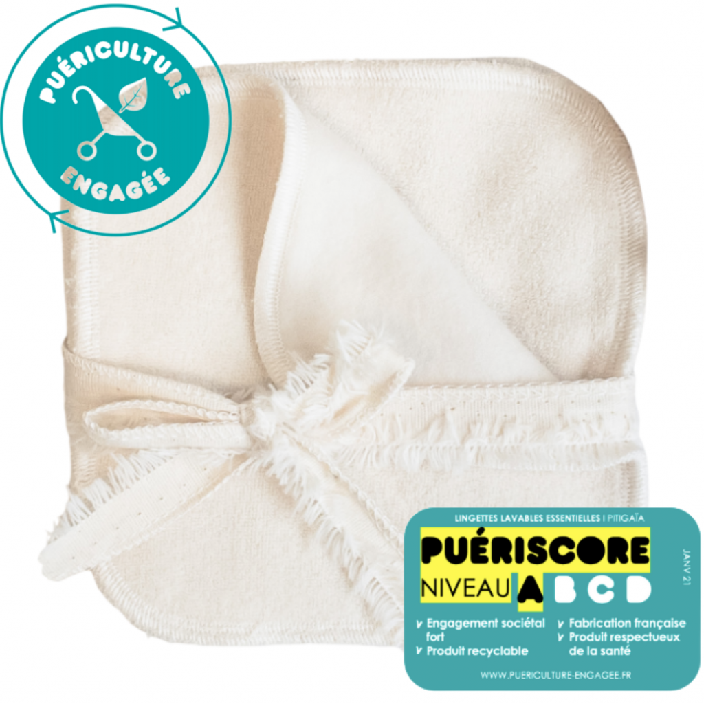 Avec un puériscrore A, les lingettes lavables de Pitigaïa sont labélisées Puériculture Engagée !