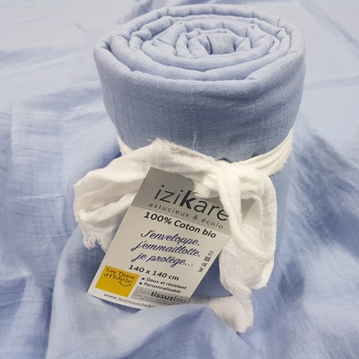 J'enveloppe, j'emmaillote, je protège... avec Izikaré, 140cm x 140cm, un maxi carré en coton biologique pour plein d'usages à personnaliser. Une couverture, un paréo, un lange, une étole.... Astucieux et écolo, Izikaré c'est un beau tissu, de la couleur, aussi doux pour la peau que pour la planète. Certifié GOTS - Izikaré par les tissus d'Adèle, des tissus en coton Bio tissés & teints près de Lyon.