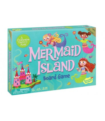Mermaid Island est un jeu en anglais édité par l'éditeur californien de jeux coopératifs Peaceable Kingdom. Le jeu est fourni avec un livret de règles de jeux en français.