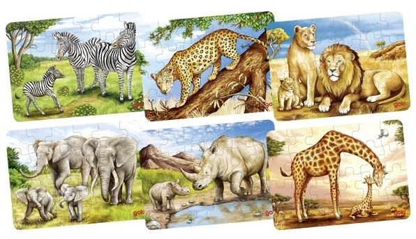 Mini puzzle, de 24 pièces, sur le thème de l'Afrique. 6 Modèles différents.