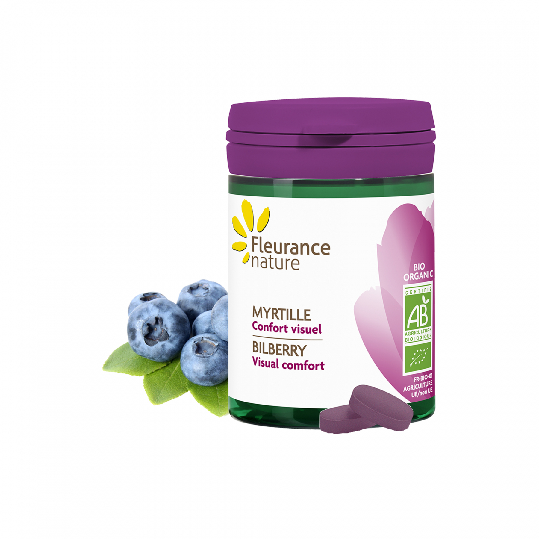 pour 3 comprimés : Poudre de jus de myrtille* (Vaccinium myrtillus) 1500 mg, maltodextrine*, amidon de riz*. *100% des ingrédients agricoles sont obtenus selon le mode de production biologique Analyse nutritionnelle pour 3 comprimés Poudre de jus de myrtille1500 mg Polyphénols37,5 mg Anthocyanes7,5 mg Ce produit n'a pas été testé sur les animaux, conformément à la règlementation européenne.