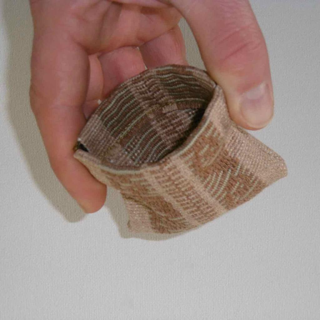 Porte-monnaie clic clac, tissé en coton de couleurs naturelles avec motif de vagues.