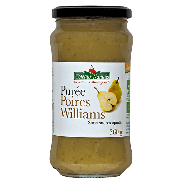 Somptueusement parfumée, la purée 100% poires Williams, cultivée soigneusement en biodynamie, saura vous séduire par son authenticité. Cuite doucement à l’étouffée, sans sucres ajoutés, à consommer dès que vous le souhaitez.