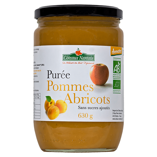 La douceur de la pomme relevée par une petite pointe acidulée de l’abricot. Un mariage réussi pour une petite pause douceur. Purée 100% purs fruits entiers cueillis à maturité, sans adjonction de sucres, cuite doucement à l’étouffée en marmite.