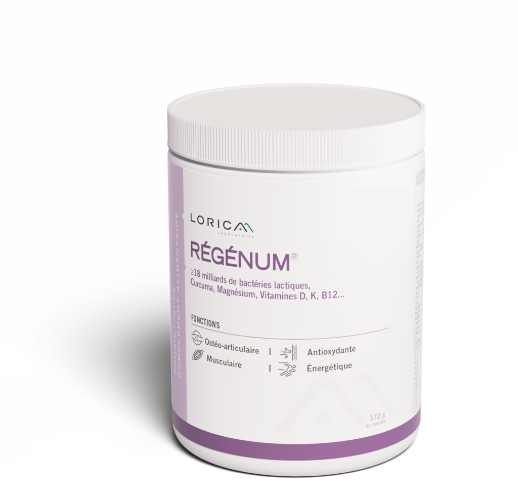 Régénum® est concentré en collagène, MSM, triglycérides à chaînes moyennes, bactéries lactiques et acides aminés.