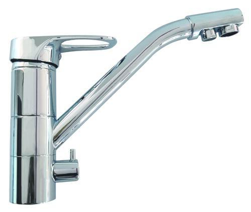 Robinet mitigeur 3 voies en inox massif - inox brillant Robinet mitigeur 3 voies de cuisine au design classique en INOX MASSIF (304) pour une finition de haute qualité et une grande robustesse. Couleur inox brillant Le robinet mitigeur est dit sécurisé, c'est à dire que les voies d'eau froide/chaude & eau froide filtrée sont totalement distincts/indépendants jusqu'à la sortie de l'eau. Les arrivées d'eau se font par 3 flexibles : Eau froide Eau chaude Eau filtrée Robinet livré complet avec tous ses accessoires de pose et ses 3 flexibles.
