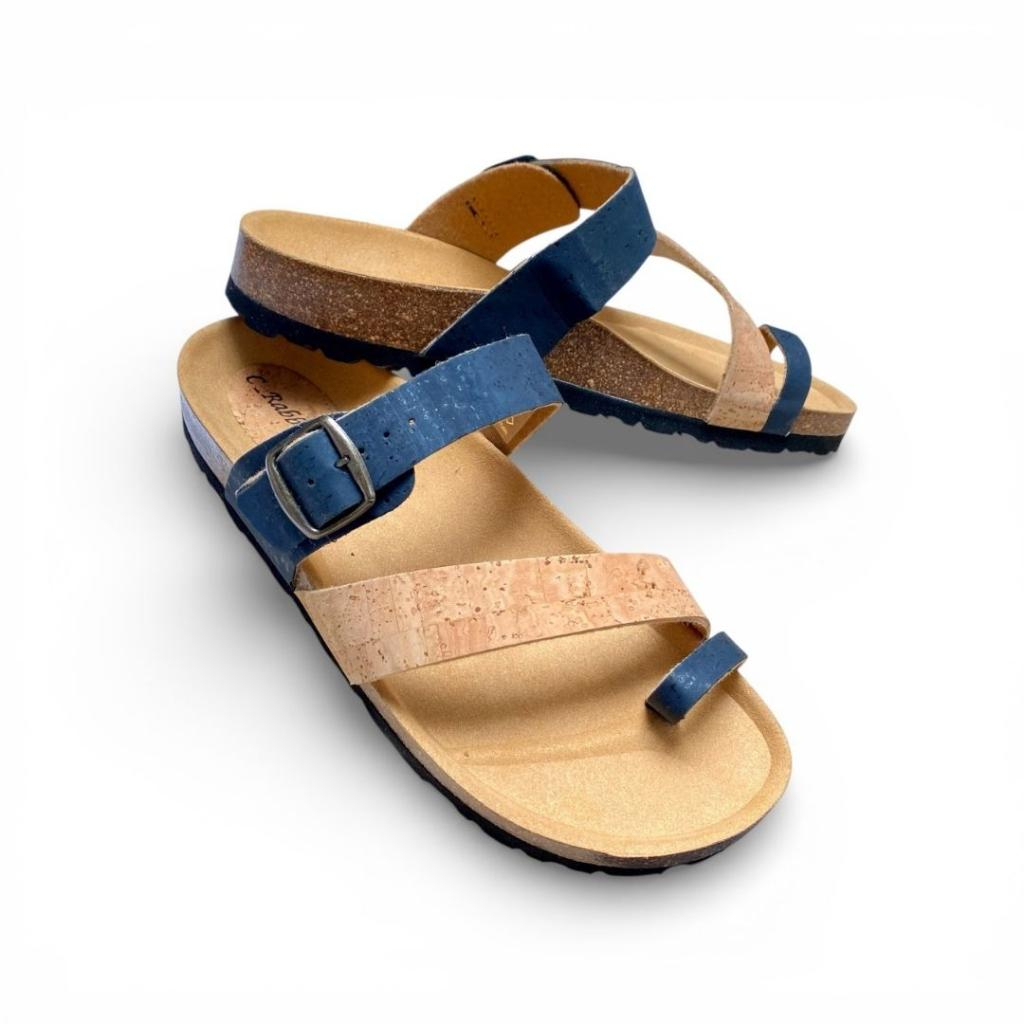 Adoptez un style estival décontracté et éco-responsable avec les sandales Indiana Marine. Conçues pour allier confort absolu et respect de l'environnement, ces claquettes bicolores marient l'élégance du bleu marine à l'authenticité du liège naturel.
