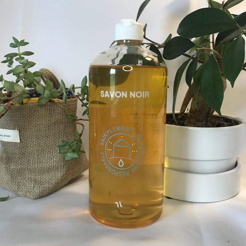 ℹ️ Le savon noir à l'huile de lin est un produit épais, il reste toujours un fond dans la bouteille qu'on a du mal à récupérer. Pour ne pas gâcher de produit, versez un fond d'eau chaude dans la bouteille, secouez, et versez cette préparation dans un spray pour l'utiliser comme spray multi surfaces : aucune perte!