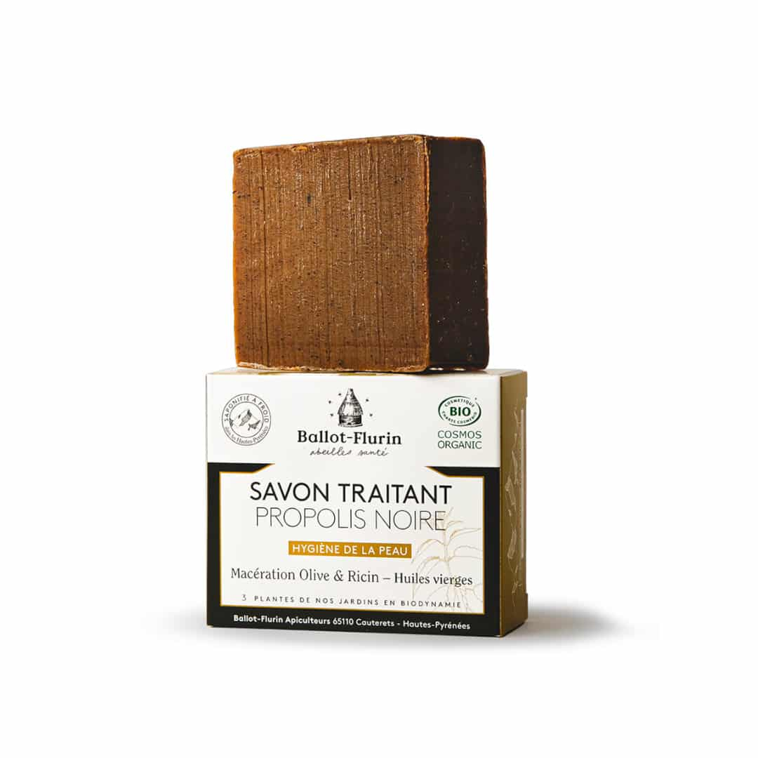 Profond et doux, ce savon à haute concentration en propolis noire (bactéricide naturel des abeilles) assure une hygiène complète visage et corps.