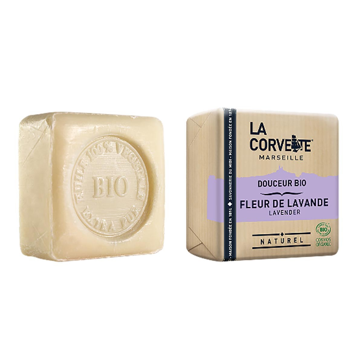 Découvrez la savonnette douceur lavande bio de la marque La Corvette.