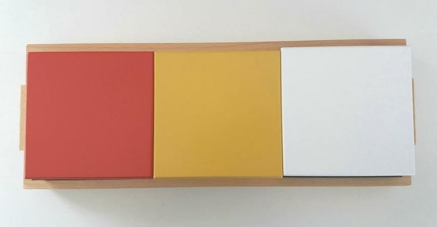 Le jeu du serpent de l'addition se compose d'un support dans lequel sont rangées 3 boites de perles avec couvercles :